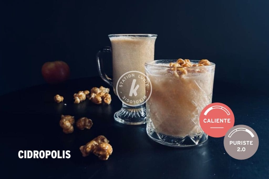 Créé grâce à un partenariat avec GoûtezAT, Cidropolis est un cocktail crémeux et moderne. Froid, c’est un dessert liquide rafraîchissant : cidre vif, café froid et une onctuosité gourmande. Chaud, le cidre et café chauffés offrent une rondeur réconfortante avec une finale lactée et fruitée. S’accorde très bien à une lecture sous la doudou!