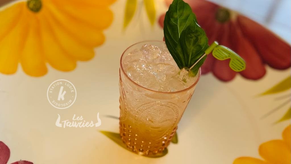 Celui-là, c’est le drink reset : léger, frais, un brin salin. Le sirop Perle (pêche, concombre) apporte une douceur et une rondeur discrètes, le kombucha lime-coriandre ajoute une acidité vivante et une petite complexité qui rend le tout franchement agréable. Avec ou sans vodka, c’est le genre de verre qui se boit calmement… mais qui se refait vite.